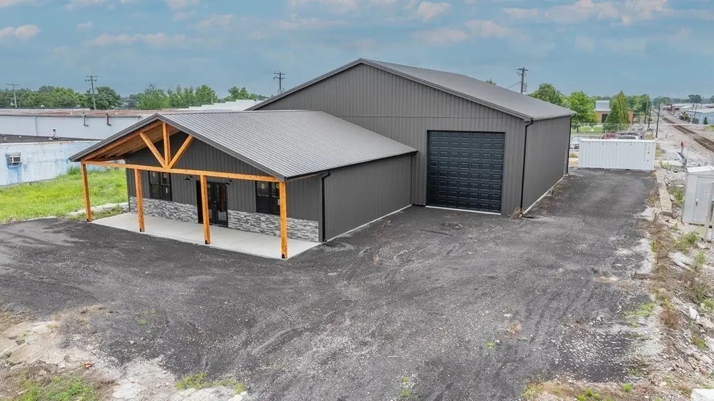 Kore Construction built this brand‑new commercial warehouse in the heart of downtown Hopkinsville for a client who needed a clean, efficient space to run everyday operations. The building combines a 1,200 sq ft modern office section with a 3,600 sq ft clear‑span warehouse, giving plenty of open floor space for storage, vehicles, or light industrial use. Two 14 ft overhead doors create true pull‑through access, making it easy to move trucks and equipment in and out while keeping traffic flowing on a tight city lot.